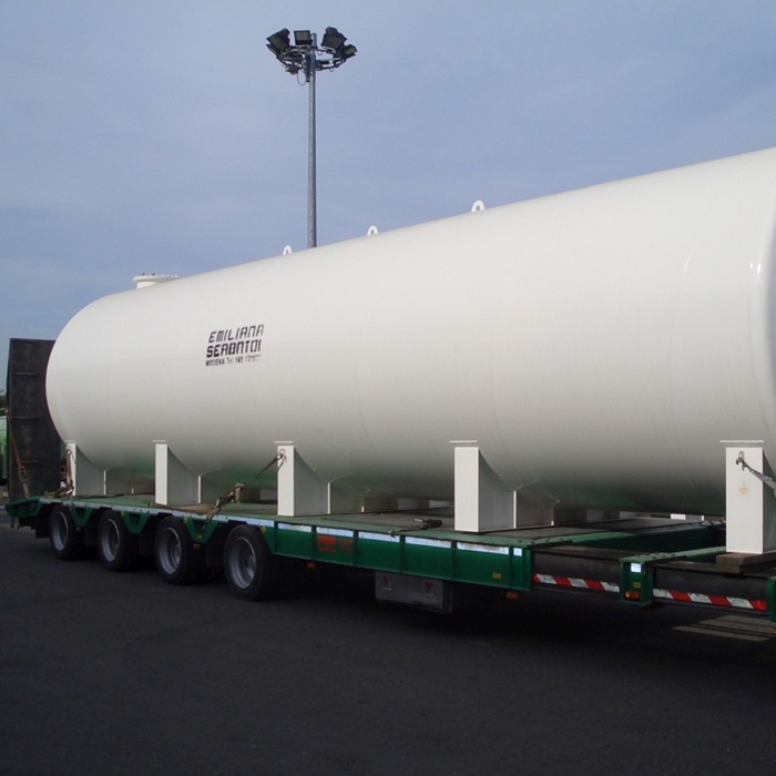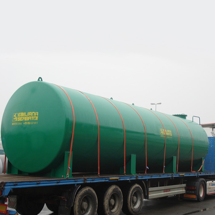 Dvoslojni horizontalni cilindrični spremnici izrađeni su od ugljičnog čelika S235JR prema UNI EN 10025 dizajnirani i proizvedeni u skladu s UNI EN 12285-2, izrađeni s pločama za školjke i zupčanim krajevima; svi spojevi su  zavareni pod vodom.