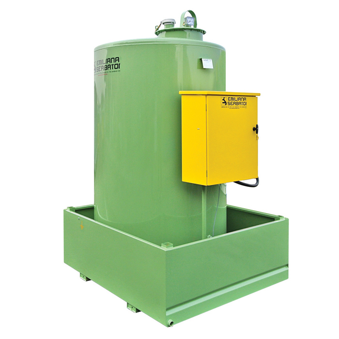 Vertikalni cilindrični spremnici s jednim zidom proizvedeni su korištenjem ljuskastih ploča i zupčastih krajeva izrađenih od ugljičnog čelika kvalitete S235JR prema UNI EN 10025. Spremnici su opremljeni spremnikom koji je dizajniran da zadrži najmanje 50% ili 100% volumena goriva za koji je spremnik projektiran. Spremnici su također opremljeni ormarićima za točenje goriva. Dostupni kapaciteti su od 975 do 9000 litara (1300, 2400, 3000, 5000, 7000).