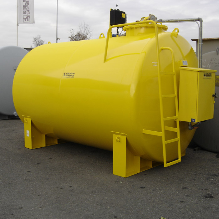 Dvoslojni horizontalni cilindrični spremnici izrađeni su od ugljičnog čelika S235JR prema UNI EN 10025 dizajnirani i proizvedeni u skladu s UNI EN 12285-2, izrađeni s pločama za školjke i zupčanim krajevima; svi spojevi su  zavareni pod vodom.